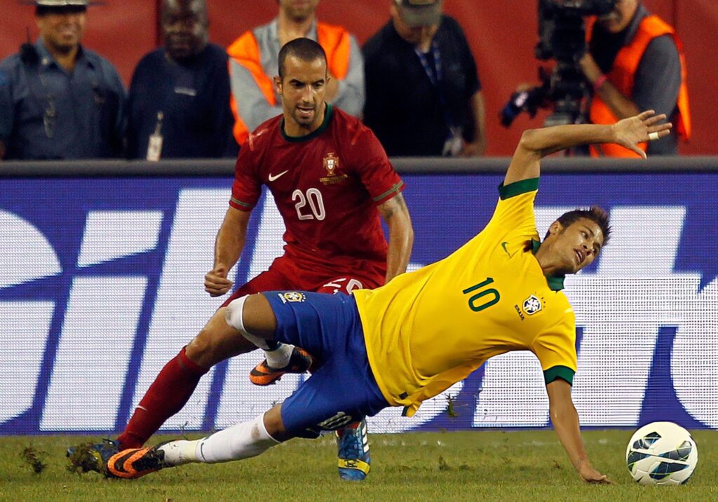 Neymar kembali menyisir sisi lapangan. Pertahanan Portugal hanya bisa menonton. Satu stepover, Amorim terpental. Penonton di Gillette Stadium Amerika Serikat bersorak.